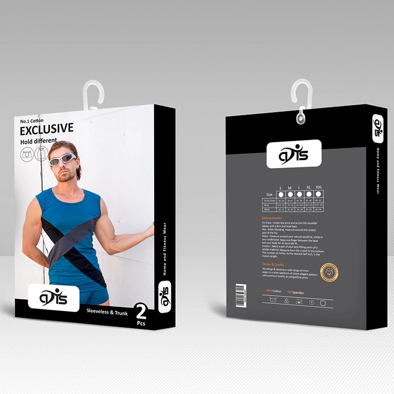 ست لباس زیر مردانه معمولاً از دو قطعه لباس زیرپوش میباشد ،مدل شورت نیمپا و مدل زیرپوش آستین حلقه ای یقه گرد میباشد.